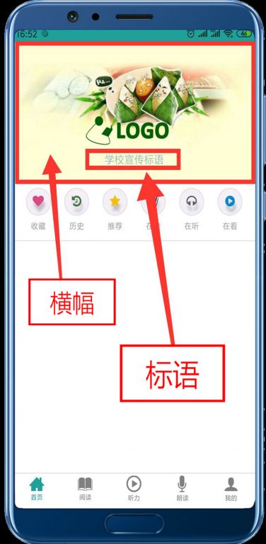 起到一个强调机构品牌、展示机构形象的作用。我们可以根据不同节日或学校活动随时更换图片和标语。比如快到端午节时或者学校举行活动后更换图片。
