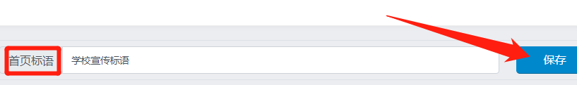 在横幅标语网页下方有【首页标语】输入栏,输入自己学校的标语,最后点击【保存】按钮即可。标语文字颜色大小位置无法更改,可以修改横幅图片配合标语。