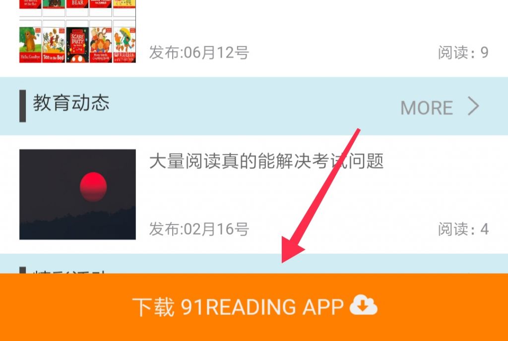 打开下载页面后,点击【安装 91READING APP】绿色按钮,安卓手机会弹出下载APP的提示。下载完成后通常会弹出安装提示,如果提示“未知来源应用”,请按照提示设置允许安装即可。如果没有弹出安装提示,请找到下载文件打开安装。