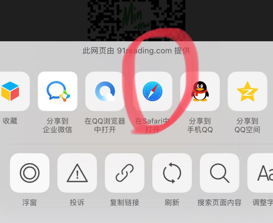 进入APP下载页面,点击【下载 91READING APA】橙色按钮。这个时候微信会提示【点击...按钮】,【选择在浏览器打开】。