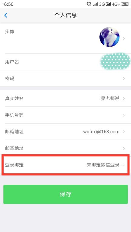 找到【登录绑定】这一项,如果提示是未绑定微信登录。请点击开始绑定微信。如下图: