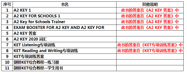 一、载止到2020年7月份,我们组织推荐的教材与课后练习一共有11本,具体明细如下: